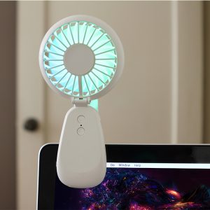 Mini ventilador portátil usb fabricado en abs con 2 velocidades y 7 cambios de luces.