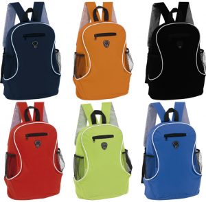 Fabricada en polyester 600D. Compartimento principal y pequeña bolsa frontal con cierre. 2 Bolsas laterales de red. Salida para audífonos.