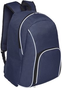 Capacidad 15 litros. Fabricada en polyester 600D. Mochila con bolsillo frontal en la parte inferior, bordes blancos y parte interna acolchada. Correa ajustable y manillas acolchadas.
