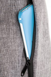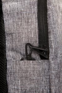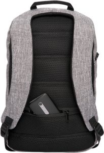 Mochila con bolsillo frontal oculto. Interior porta notebook y tres compartimentos pequeños, cierre con traba de seguridad para evitar robos. Parte posterior acolchonada con red que permite la ventilación de la espalda y un bolsillo pequeño con cierre. Correas regulables acolchonadas