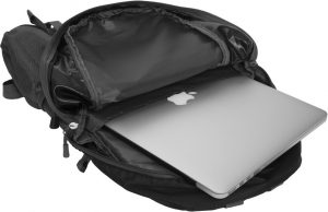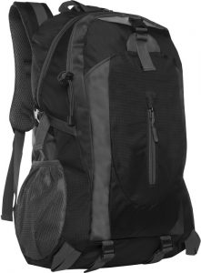 Fabricado en polyester 600D. Capacidad 20 litros. Mochila con dos compartimentos, el principal acolchonado. Dos bolsillos exteriores, uno con cierre y el segundo cierre con hebilla y detalle de material reflectante. En los laterales dos bolsillos de red y elásticos regulables para sostener accesorios. En la parte inferior dos tiras regulables que permite llevar diferentes objetos. Correas acolchonadas con red que permite la ventilación y también contiene una cinta ajustable para pectorales.