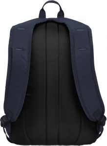 Fabricada en polyester. Capacidad 25 Litros. Mochila con compartimento principal acolchonado porta notebook de hasta 15”. En el exterior un bolsillo pequeño y otro grande con cierre que en su interior cuenta con tres compartimentos y en sus extremos dos bolsillos laterales de red. Herrajes de goma con detalles de color. Correas acolchonadas regulables.