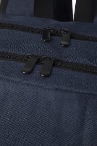 Capacidad 14 litros aprox. Amplio bolsillo frontal con cierre lateral. Posee 2 compartimentos acolchados y forrados. El primero con un bolsillo de red con cierre, organizador con pequeños bolsillos, porta boligrafos y espacio para guardar una tablet. El segundo compartimento contiene bolsillo para notebook. Correas y espaldar acolchados con tela de red que permite la ventilación. Cierre con herrajes metálicos.