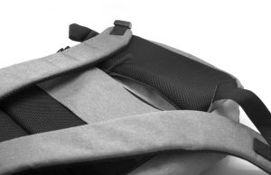 Un compartimento acojinado y forrado con espacio para guardar una notebook. Bolsillo horizontal en el frente con amplio espacio. Espaldar y correas acojinadas, con malla que permite la ventilación de la espalda. Cuenta con un bolsillo con cierre. Tira que permite enganchar la manija extensible de las valijas. El cierre del compartimento principal es invisible y cuenta con tirantes plásticos.