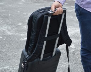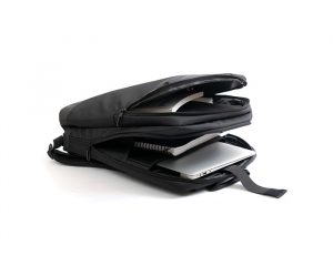 Mochila tipo backpack porta laptop de 15.6 pulgadas con tres compartimentos y bolsa lateral con malla desplegable. Interior acolchado con compartimentos para accesorios. Correas acolchadas ajustables. La bolsa frontal cuenta con gancho para accesorios desplegable. Banda para sujetarse sobre maleta de viaje, asa superior, argolla para accesorios y un compartimento adicional en la correa.