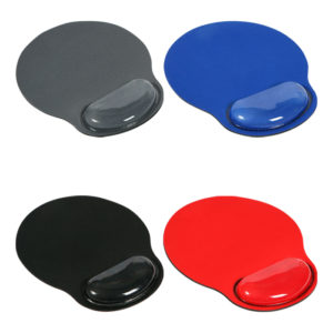 Mouse pad ergonómico con cubierta de plástico y soporte de gel para muñeca.