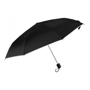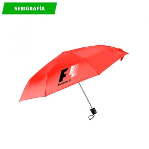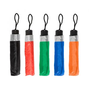 Paraguas de bolsillo en poliéster con 8 gajos, mango retráctil y funda.