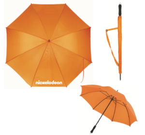 Paraguas, medida 128 cm de diámetro, de 8 gajos. Material: Polyester. Vara metálica y mango recto de espuma. Funda con correa.
