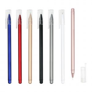 Bolígrafo fabricado en abs con tapón transparente y tinta de escritura negra de gel.