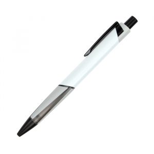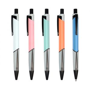Bolígrafo retráctil fabricado en aluminio con forma triangular y grip tipo goma, tinta de escritura negra.