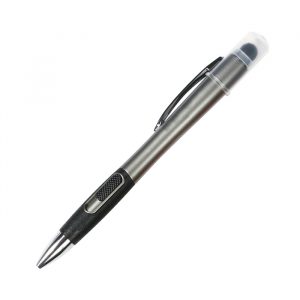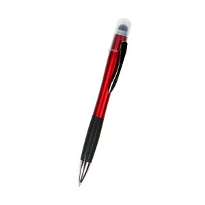 Bolígrafo retráctil fabricado en plástico con luz interior del color del barril, puntero touch y tinta de escritura negra.