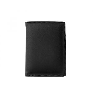 Porta pasaporte fabricado en curpiel con compartimentos interiores.