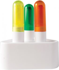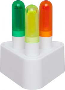 Set de tres resaltadores de cera con base triangular. Sistema “anti dry”.