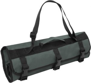 Fabricado en polyester y acero inoxidable. Set de accesorios para asador. Incluye: tenedor asador, cuchillo, espatula, pinza, brocha, 4 brochetas largas y 6 brochetas pequeñas. Estuche de polyester con manija y tres hebillas plásticas para cerrar.