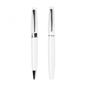 Set de bolígrafos en metal brillante ball pen y roller con tinta negra de escritura, incluye estuche.