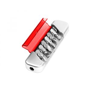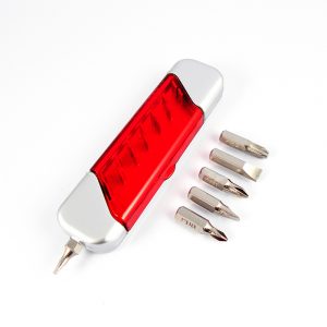 Set de desarmadores fabricado en metal con plástico translúcido.