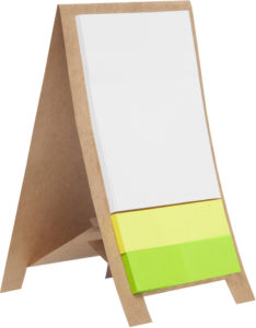 Contiene 3 blocks autoadhesivos: 2 pequeños de color y 1 rectangular blanco.