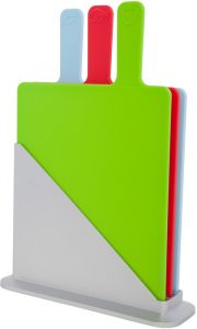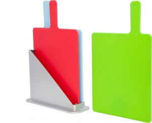 Set de tres tablas para picar, una para cada alimento, con una base para poner las tablas y mantenerlas ordenadas.