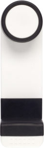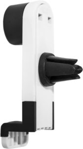 Soporte de celular para colocar en la rejilla del aire. En sus extremidades detalles engomados negros.
