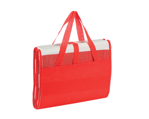 Tapete plegable para playa con bolsa plástica para inflar que sirve como almohadilla.