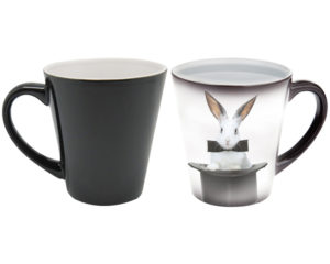 Taza mágica cónica, el diseño aparece al servir agua caliente. CAP. 12 OZ.