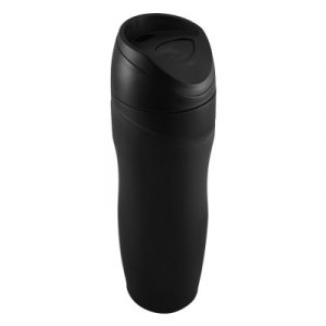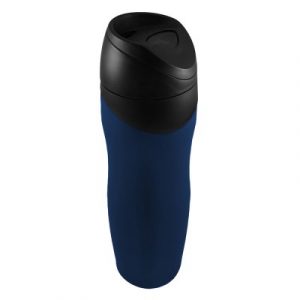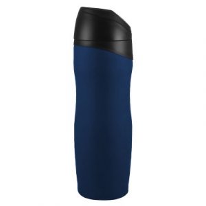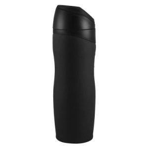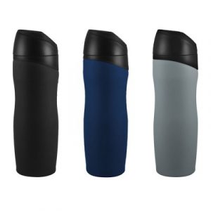 Termo de acero inoxidable de doble pared insulada al vacío. Terminado Rubber y tapa con cierre de rosca con botón pulsador para abrir y cerrar. Capacidad de 450 ml. Certificación FDA.