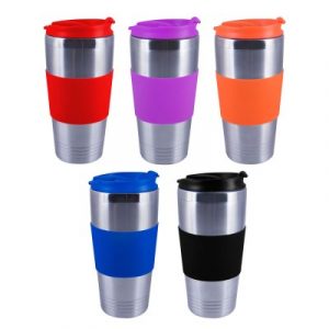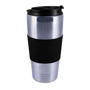 Termo con doble pared de acero inoxidable y grip de silicón con capacidad de 450 ml.