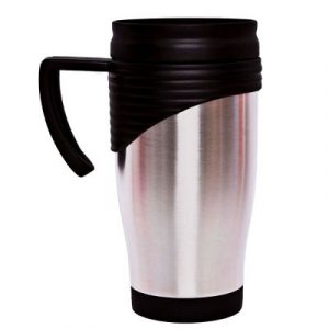 Termo de acero inoxidable y plástico con capacidad de 400 ml. Tapa de rosca.