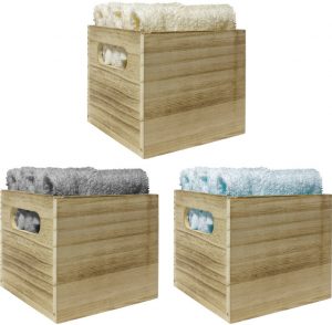 Set de 4 toallas de mano en caja de madera.